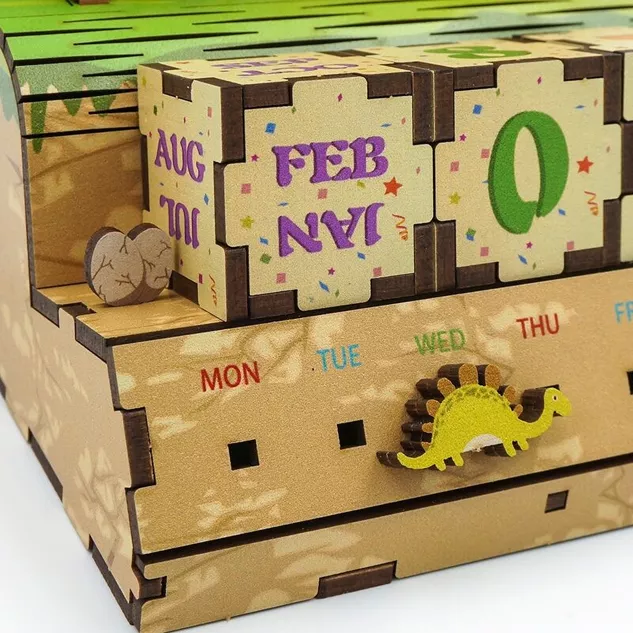 Calendrier de puzzle en bois bricolage, fête jurassique